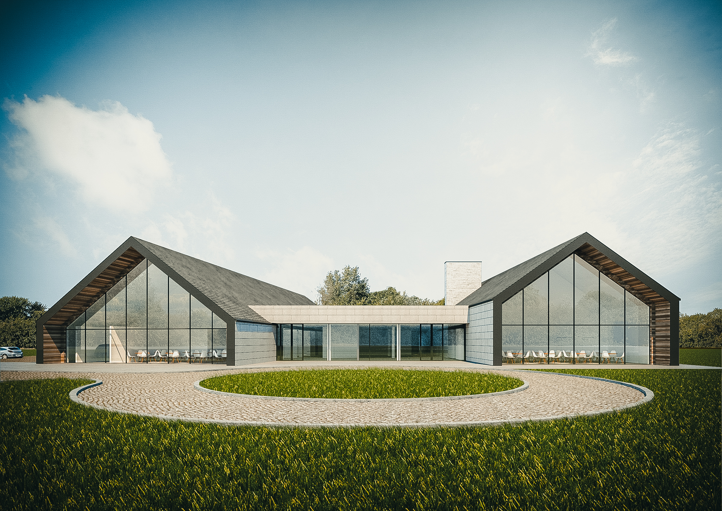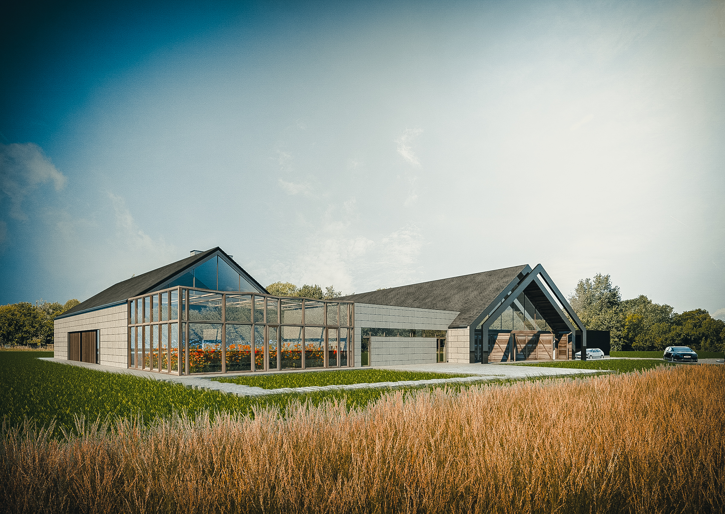 Mieścić go będzie zespół dwóch budynków w formie nowoczesnych stodół zorientowanych względem siebie na planie litery V. Połączy je pawilonowy łącznik.
